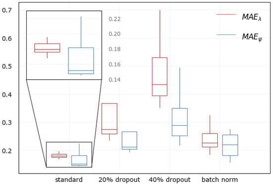Figure 6 shows the hyperparameters sensitivity of all models. The selected hyperparameter proved to be the best combination for the standard DL model. The model with no regularization achieved the most optimum error compared to other models with regularization, confirming that the model was already generalized well without overfitting. Applying dropout worsened the model performances than applying batch normalization. Naturally, predictions of longitude values would have less accuracy than latitude values since the longitude values have a distribution twice as large as latitude. This natural divergence appears to negatively affect the model with batch normalization but at the expense of accuracy.