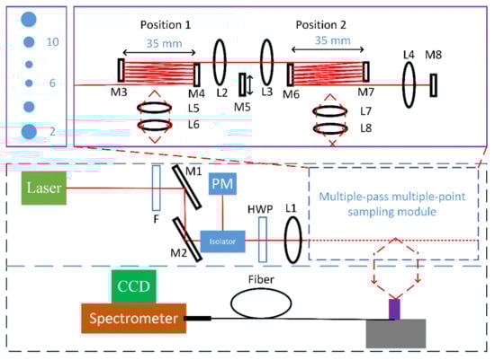 - Petrov, D.V. Multipass Optical System for a Raman Gas Spectrometer. Appl. Opt. 2016, 55, 9521–9525. [Google Scholar] [CrossRef] [PubMed]