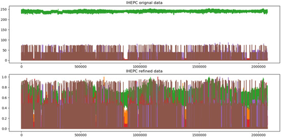 Figure 3, where the IHEPC dataset features range lies between 0 and 250. So, through assistance of min-max normalization, the diverse features range is transformed into 0 and 1.