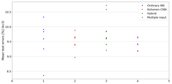Table 3 presents results for Kohonen-CNN networks. The best performing architectures are reported.
