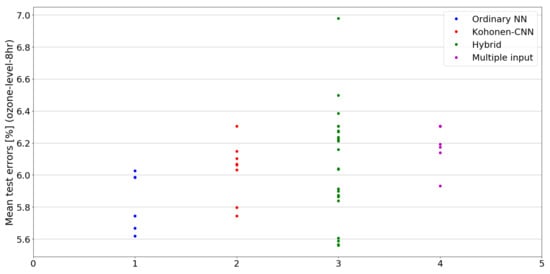 Cross-validation test errors for different architectures for ozone-level-8hr dataset.