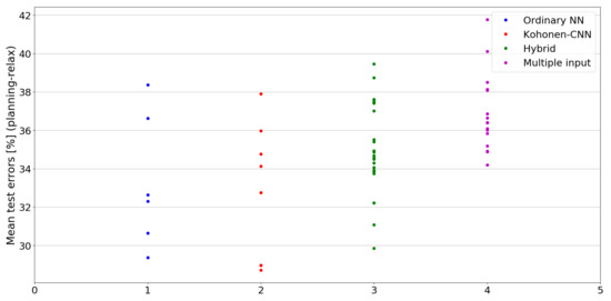 Cross-validation test errors for different architectures for planning-relax dataset.