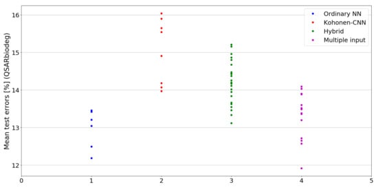 Cross-validation test errors for different architectures for QSARbiodeg dataset.