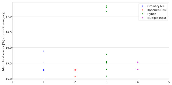 Cross-validation test errors for different architectures for thoracic-surgery dataset.