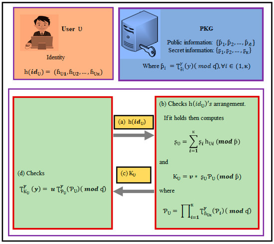We will now show our novel concept for converting a conformable Chebyshev chaotic maps-based cryptosystem into an IBE scheme under human-centered IoT environments. Please pay close attention to our essential KGS, since this is where the actual difference is made. Conformable Chebyshev chaotic maps-based cryptosystems can be easily turned into IBE schemes by effectively articulating private keys.