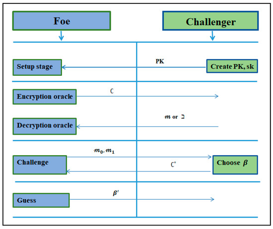 - If is true, and the decryption inquiry is executed by with and the response of the challenger are transferred back to .