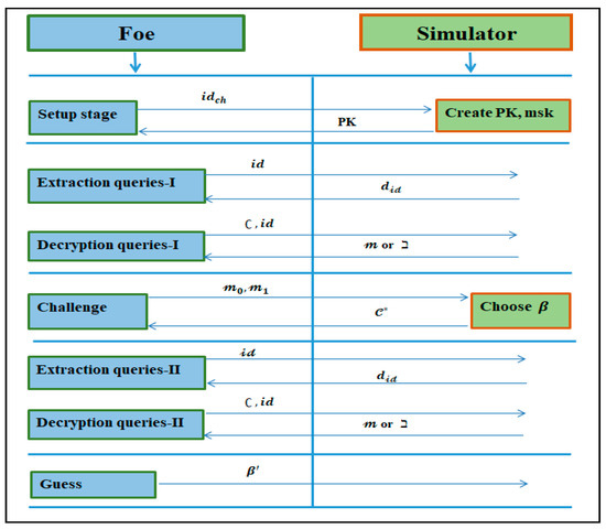 The responses to -inquiries are identical to what will occur in real-world attacks. In the meantime, in , every response is uniformly and freely spread. The full responses to decryption and SK extraction queries are valid. Thus, the will not abort for the simulation period; particularly, the probability of flawless simulation is 1. Following this, we can assume the foe has fruitfully played the adversary and hurled a true attack. We obtained the result , through the explanation of method , which at least has advantage over the PKC utilizing conformable Chebyshev chaotic maps. This concludes the proof and verifies hypothesis 1.