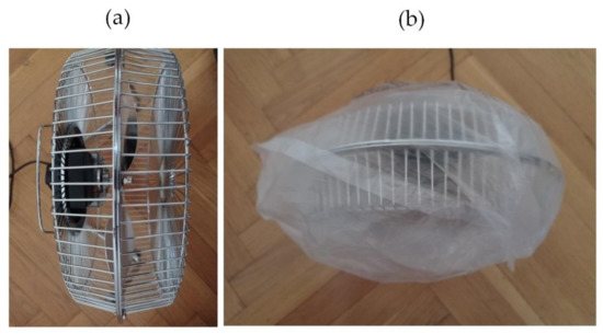 Analyzed fan: (a) healthy BLDC motor, (b) blocked ventilation of the BLDC motor.