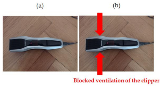 Analyzed clipper HC5440/80: (a) healthy clipper, (b) blocked ventilation of the clipper.