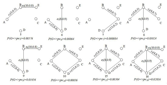 Figure 2 lists some of the possible world graphs derived from with their probabilities. For example, possible world graph has two edges and its probability of existence is .