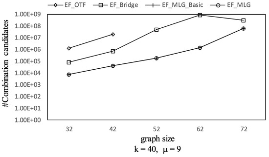 There are also many in-line curves from Experiment 3, such as EF_MLG_Basic and EF_MLG have the same combination pruning abilities. EF_Bridge, EF_MLG_Basic and EF_MLG have the same tree combination pruning performance. EF_OTF, EF_Bridge, EF_MLG_Basic and EF_MLG are no different on spanning tree pruning. The reasons are studied when analyzing Experiments 1 and 2.