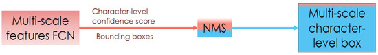 Our proposed Fast and Accurate Network for Multi-scale Chinese Character Detection (FAN-MCCD), depicted in Figure 3, is an end-to-end network that detects dense and multi-scale characters existing in the image simultaneously. The first part is a feature extractor (FCN) fully convolutional network designed for such a pyramid concept; then, default boxes with different scales and aspect ratios over each feature map are used to detect large- and small-scale characters. Finally, NMS is exploited to filter the huge number of predicted boxes.