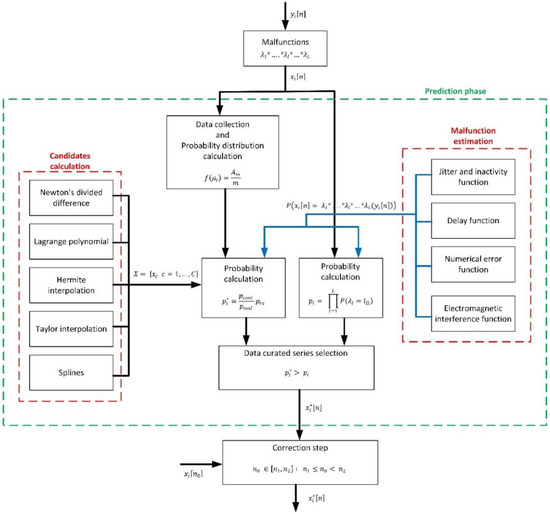 If a real-time data curation is performed, new information about the curation interval is received at each sampling period . In that case, a correction phase is carried out. In this phase, the new sample is compared to the predicted one, and (depending on how different they are) different actions are taken to correct the curated time series initially calculated.