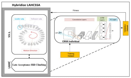 This section introduces our proposed framework, which is capable of optimizing the hyperparameters and configuration structure of a deep learning model. Our model is called the Dynamically Configurable Convolutional Recurrent Neural Network (DC-CRNN). In this model, we used a CRNN that is dynamically configured by the proposed hybrid Salp Swarm algorithm. The framework of our DC-CRNN is presented in Figure 1.