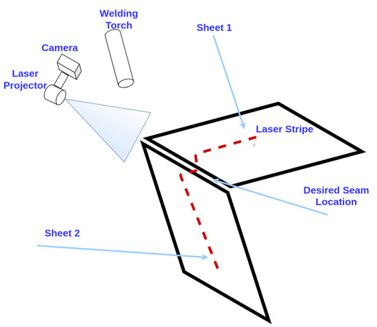 Structured light sensing for welding seam tracking is one of the widely used techniques in robotic welding [6]. Images captured by the structured light sensors are less affected by the intensity of the lighting in the welding process than passive vision sensors [7] but nevertheless, different types of metal sheets produce varied light reflection, e.g., stainless steel produces strong specular reflections of the laser light. There is also a lot of noise in the images due to irregular surfaces and due to the image background in the industrial environment as can be observed in the images captured by the camera of the system investigated in this paper (see Figure 1). Existing machine vision systems are successfully applied in industry and produce satisfactory results in many cases. However, these approaches lack robustness [3] in face of variation in imaging conditions, changes in materials to be welded, and geometry changes of the welding setup. This a common scenario with legacy measurement systems in manufacturing as in the case of the robotic welding system investigated in this paper.