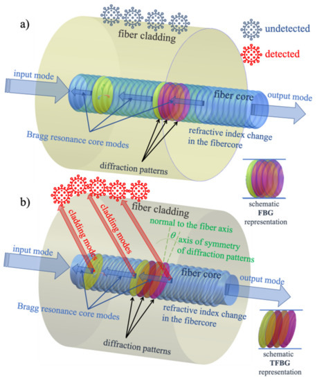 2.1. Principle of FBG and TFBG Sensing Mechanism