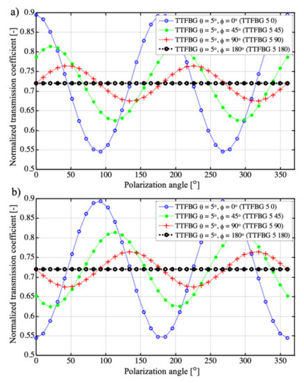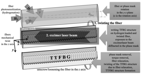 - Kisała, P.; Mroczka, J.; Cięszczyk, S.; Skorupski, K.; Panas, P. Twisted tilted fiber Bragg gratings: New structures and polarization properties. Opt. Lett. 2018, 43, 4445–4448. [Google Scholar] [CrossRef] [PubMed]