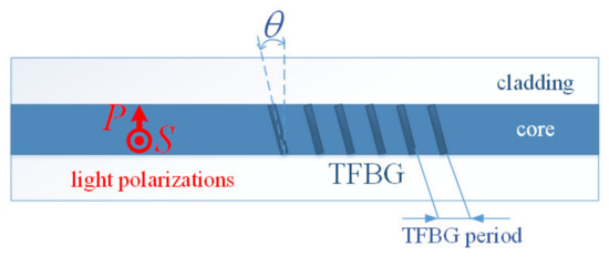 - Caucheteur, C. Light Polarization-Assisted Sensing with Tilted Fiber Bragg Gratings. Open Opt. J. 2014, 7, 95–103. [Google Scholar] [CrossRef][Green Version]