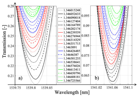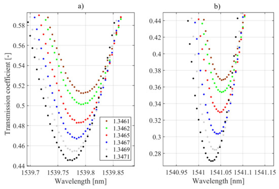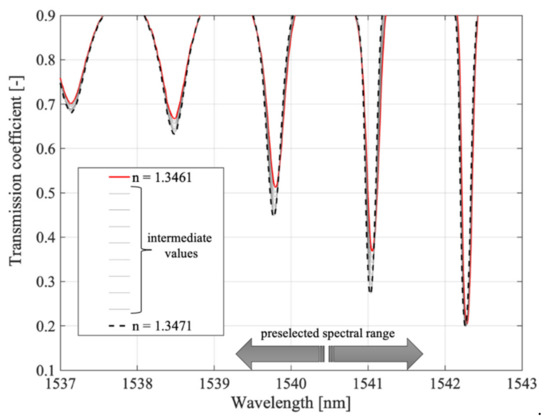- Tomyshev, K.A.; Manuilovich, E.S.; Tazhetdinova, D.K.; Dolzhenko, E.I.; Butov, O.V. High-precision data analysis for TFBG-assisted refractometer. Sens. Actuators A Phys. 2020, 308, 112016. [Google Scholar] [CrossRef]
