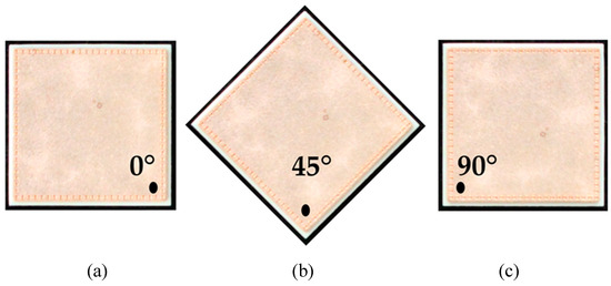 An example of a direct bonded copper sheet rotated according to the three different measurement angles (a) 0°, (b) 45° and (c) 90°.