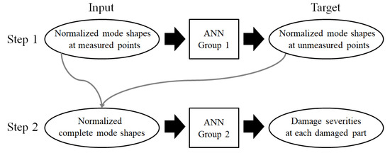 Flowchart of two-step damage detection using ANN.