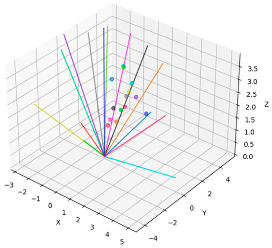 Geometrically (see Figure 1), this means rotating and translating the point set {pi}, so that the sum of squared norms of their respective projections on the lines spanned by the {ui} is maximized (i.e., the points are optimally aligned with the respective “lines of sight”). Due to the great importance of this problem in real-life applications, it was addressed in numerous papers. The solution obtained by minimizing Equation (1) is global and does not rely on approximations and iterative schemes.
