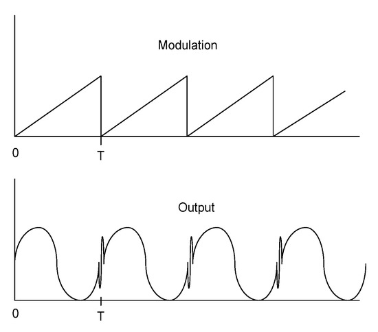 In Figure 8, it is possible to see peaks in the sinusoidal wave. These peaks result from the discontinuity of the wave ramp signal that introduces a fast flyback period. This flyback can be ignored or eliminated using bandpass filtering around the ramp frequency.