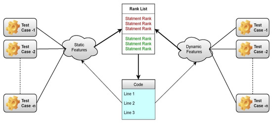 Static methods create implementation-based requirements, whereas dynamic ones generate their specifications by watching the program run. Execution-trace analyses include dynamic strategies. The ranking model’s construct is presented in Figure 1, where static and dynamic features are considered.
