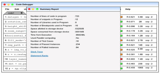Throughout implementation, if a statement is erroneous, the program will raise an exception. The collection of active stack sessions throughout a problematic program’s execution is also one of the most helpful debugging strategies [27,28]. The code snippet and associated test cases used in the validation are being presented in the Table 3 for better comprehensibility of the current study.
