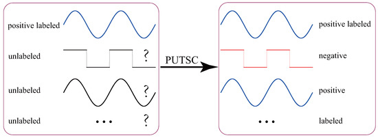 Conventional supervised TSC tasks assume that all training data are labeled, and they train a high-quality classification model based on these labeled data. However, in practice, manually collecting and labelling all unlabeled training data could be very time-consuming and often requires the participation of skilled domain experts. On the other hand, with the popularity of various cheap sensors and the increase in storage capacity, a large number of unlabeled time-series data are being generated every day. Thus, the paradigm of supervised TSC is not practical in many real-life applications. Rather, the TSC tasks in real-life often involve positive unlabeled TSC (PUTSC) [5,6], which we study in this paper. Suppose that PL is a set containing only a small number of positive labeled time-series and U is a large set of unlabeled (positive and negative) time-series, the task of PUTSC is to automatically label the U set based on PL set. Figure 1 shows an example of PUTSC.