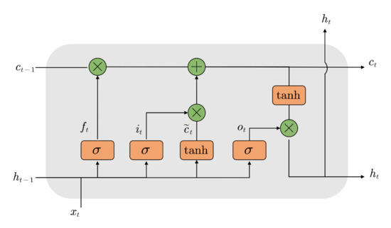 where, stands for activate function sigmoid defined as , , , respectively stand for the outputs of the “input”, “forget”, and “output” gates. represents the long-term memory state of the cell at time ,