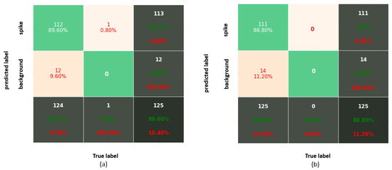 Selective search was used successfully for region proposals generation [19]. On the other hand, faster RCNN deploys a small DNN for feature extraction for a region proposal network (RPN). In recent years, RPN was used prior to the main object detector, which produces candidate objects with an objectness score for object detection, and was implemented successfully in many publicly available data sets [20]. In this work, we have implemented a two-stage cascaded detection Faster-RCNN framework [21]. In the first stage, multiple objects are proposed prior to extracting features for the main detector. These proposals are spike or background. Its deployment improves the classifier accuracy, but this improvement come at the expense of an increase in computational resources. The RPN is implemented as a fully convolutional network and works as a mini-network trained end-to-end with a main object detector. RPN and region-based object detection DNN share the same convolution feature. The computational speed of RPN compared to the selective search space is 10 ms to 0.2 s per image [21]. The features in the convolution layers are shared in RPNs and DNN object detectors. The RPNs are fed directly to the DNN object detector. The DNN initializes the weights in RPNs with zero-mean Gaussian distribution and standard deviation 0.01. In the first stage of processing, 100 spike proposals were extracted for features and regression. Each anchor/proposal generated has either a positive anchor label or negative anchor label. The positive label is assigned to those which have the highest IoU with ground truth or an IoU overlap higher than 0.7, whereas the negative anchor label is one in which the IoU is lower than 0.3. The RPN computes the features map with six different anchor sizes, differentiated by the aspect ratio, which is initialized at the beginning of the training process. Therefore, each regressor is responsible for extracting weight in a separate spatial size () on the feature map. The loss (softmax loss for classification and L1 loss for regression) in RPN is calculated in a mini-batch to mitigate the bias towards background space, as it is dominated by negative anchors. The negative anchors are background samples, compared to the foreground, which occupies a smaller spatial size. This is done to ensure that the classifier is not biased towards the over-sampled anchors from the background.