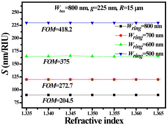 Evaluation of S and FOM based on Wring. The remaining geometric parameters such as Wbus, R and g were fixed at 800 nm, 15 μm and 225 nm, respectively.