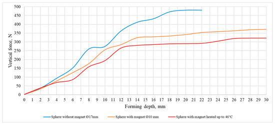 Dependence of the forming force on forming depth.