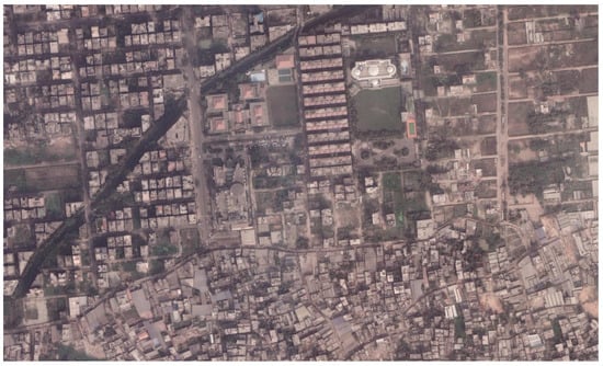 For example, between 2003 and 2010, the city of Hyderabad in India experienced a increase in slum areas [25]. Unfortunately, the situation is not unique to India or the global south. UN estimations show that the global slum population is around one billion at present and may rise to two billion by 2030 (UN-Habitat Report 2016 [26]). Among urban dwellers, many of them come to the city for jobs and start living in informal areas. Medium–high-wage job holders build their houses in better environments. However, they do not maintain the urban regulation and city corporation laws. Their areas might include shabby structures, as well as brick structures without any formal structures or surroundings. In this way, a moderately informal area is built. Figure 1 provides an example image of the urban environment in Dhaka.