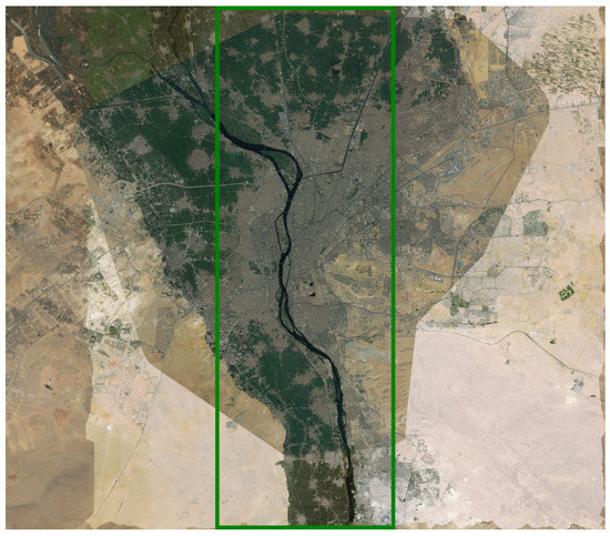 The average population density of the Greater Cairo metropolitan area is 6667 per square kilometer. It covers an area of about square kilometers. Greater Cairo is divided into Cairo, New Cairo, Giza, Shubrā al-Khaymah, the 6 October (city), Helwan, and El-Obour As a result, our 50 × 50 km map includes the above areas and some suburbs. As desert areas surround Cairo, high-density residential areas are distributed in the Nile River Basin. Informal areas are mainly distributed on both sides of the Nile River Basin, as well as the farmland around the north, west, and south. The formal area is located in the core area of Cairo’s new town and Giza. The buildings in Cairo’s informal areas are mainly made of bricks.