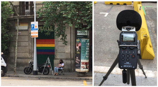 In order to obtain a suitable real-world dataset to validate the proposed approach (i.e., multilabel classification of urban sounds taking advantage of physical redundancy in sensor nodes), two recording campaigns were conducted in the metropolitan area of the center of Barcelona (Spain). To have a wider variety of data, the two recording campaigns took place in different seasons of the year. The first one was conducted during autumn 2020 (17 November 2020) and the second one was conducted during spring 2021 (31 May 2021). Another substantial difference is that the first recording campaign was conducted under mobility restrictions [50] due to the COVID-19 pandemic, while during the second recording campaign, those restrictions were significantly softer. To have even more diversity in data, the hours in which the recording campaigns took place were different: whereas the autumn campaign was recorded from 12:00 to 14:30, the spring campaign was recorded from 15:30 to 18:00.