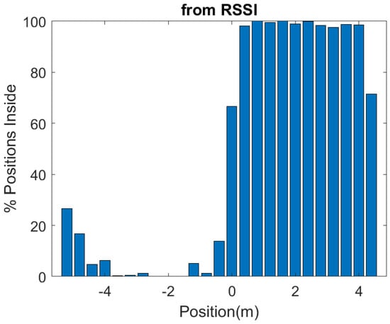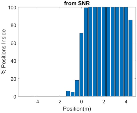 Percentage of cases in which the smart mask is classified inside, as a function of the position with respect to each of the receivers, obtained by comparing the measured SNR of each receiver at each position.