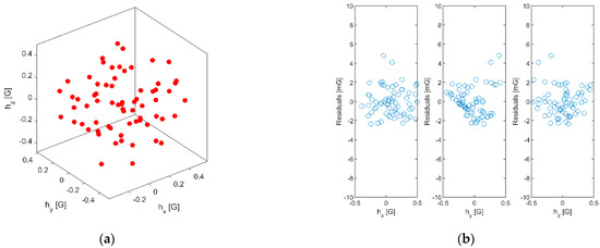 (a) Generated static magnetic fields; (b) calibration residuals.