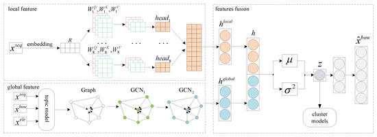 - pre-training. The extracted local features and global features are concatenated as the input of the variational auto-encoder, and Equation (23) is taken as the optimization target for iterative training. After the pre-training, the latent representations of the news can be preliminarily obtained.