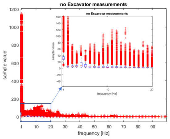 Box plot of the spectrum samples used for classifier training for the ‘no excavator’ event.