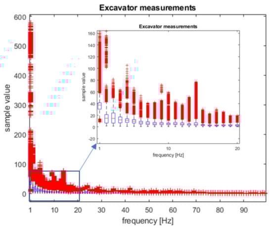 Box plot of the spectrum samples used for classifier training for the ‘excavator’ event.