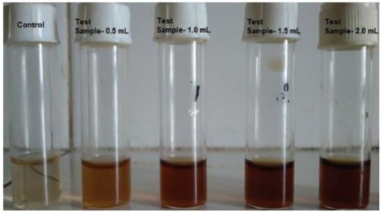Mazhari and Agsar [] proposed the use of Streptomyces tuirus DBZ39 synthesized on extracellular gold nanoparticles for the visual detection of phenol. The visual detection was improved by the addition of sodium sulphate, and the change of color occurred within 2 min. The proposed method was successfully tested with water samples from the effluents of fertilizer and distillery industries.