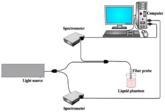 Diffuse reflectance measurements often coupled with the use of optical fibers are also widely used for developing phenolic compounds sensors [,]. A typical set-up, where a tungsten halogen broadband is used as a light source and a fiber-optic probe is in contact with the sample used for this approach, is shown in Figure 2.