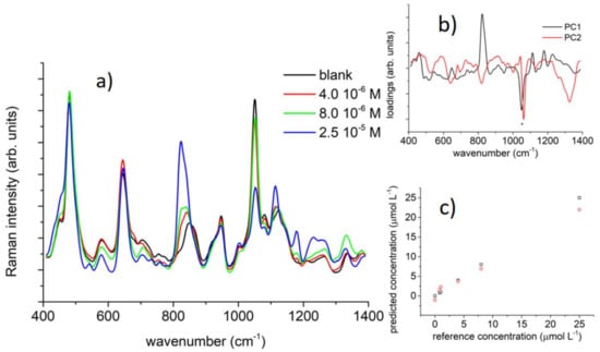 In the last several decades, there has also been a very large use of vibrational spectroscopies techniques for developing very sensitive optical sensing schemes for phenolic substances. These spectroscopies represent a class of analytical techniques that give information on vibrational energy levels associated with the functionality of the examined sample. Fourier Trasform Infrared (FT-IR) spectroscopy measures the light absorption using a broadband light source in the 4000–500 cm−1 wavenumber region (or in the 2500–20,000 nm wavelength range), while Raman spectroscopy (RS) is related to the inelastic scattering process occurring when light interacts with matter []. When FT-IR and the Raman spectrometer are equipped with a microscope, they allow the biochemical characterization of samples also at microscopic levels [,].