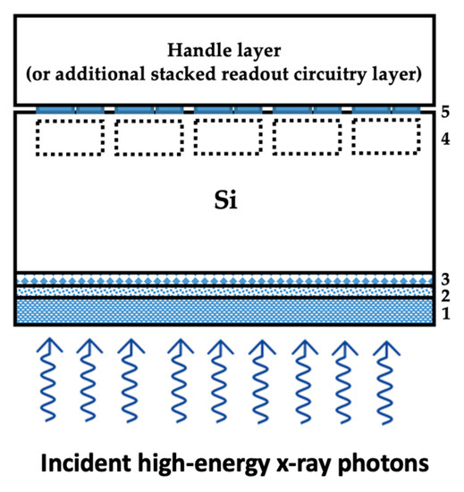 - Lee, E.; Anagnost, K.M.; Yue, X.; Baldwin, J.K.S.; Levey, C.G.; Wang, Z.; Fossum, E.R.; Liu, J. Towards the Quantum Yield Enhancement of High-Energy X-ray Detection by Si CMOS Image Sensors Using High-Z Thin-Film Semiconductor Photon Energy Attenuation Layers. Available online: https://www.krellinst.org/nnsassgf/conf/2021/pres/lee2019.pdf (accessed on 12 May 2021).
