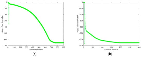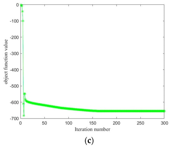 In this section, the convergence of the ADMM-based JFSSS-HFT optimization algorithm (i.e., Algorithm 1) is analyzed under different learning rates, i.e., p. The obtained convergence curves are shown in Figure 5. It can be seen that the objective function value (see Equation (5)) has a slight oscillation in the first few iterations, and the objective function values gradually decrease when the iteration number increases. More importantly, it is observed that the different convergence speeds can be obtained under different p. In addition, alongside the increase in p, a large convergence speed can be obtained. For different values of p, the objective function values become stable after 120 iterations. Therefore, it is reasonable to set the minimum iteration number to exceed 200.