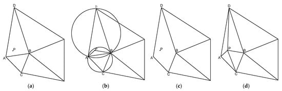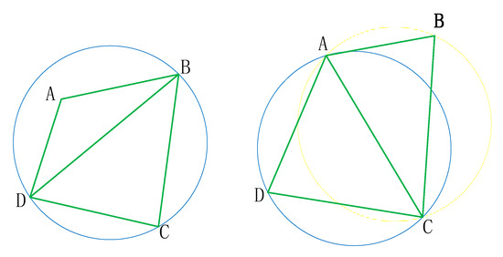 The LOP processing process is shown in Figure 7. The circumscribed circle of △BCD on the left of the figure below contains point A, then execute (3), after execution, the right of the figure below.