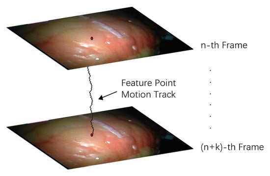 Feature point tracking refers to tracking the 3D spatial coordinates of pixels in a certain length of video sequence. Tracking the position changes of multiple points is conducive to the shape change analysis of the target area. The tracking of feature points in endoscopic video is shown in Figure 10.