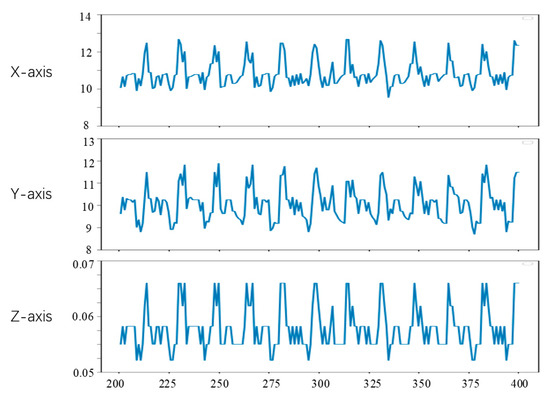 From Figure 15, Figure 16 and Figure 17, it can be seen that the method in this study is able to successfully track the position of the three selected feature points, and each feature point moves within a certain range, which shows the effectiveness of the feature tracking method presented in this paper. The tracking results of point a and point b show that both point a and point b move periodically. Due to the influence of feature point extraction algorithm, the tracking results contain a small amount of noise. However, the tracking results of point c show that the movement of this point does not show obvious regularity in the current stage.